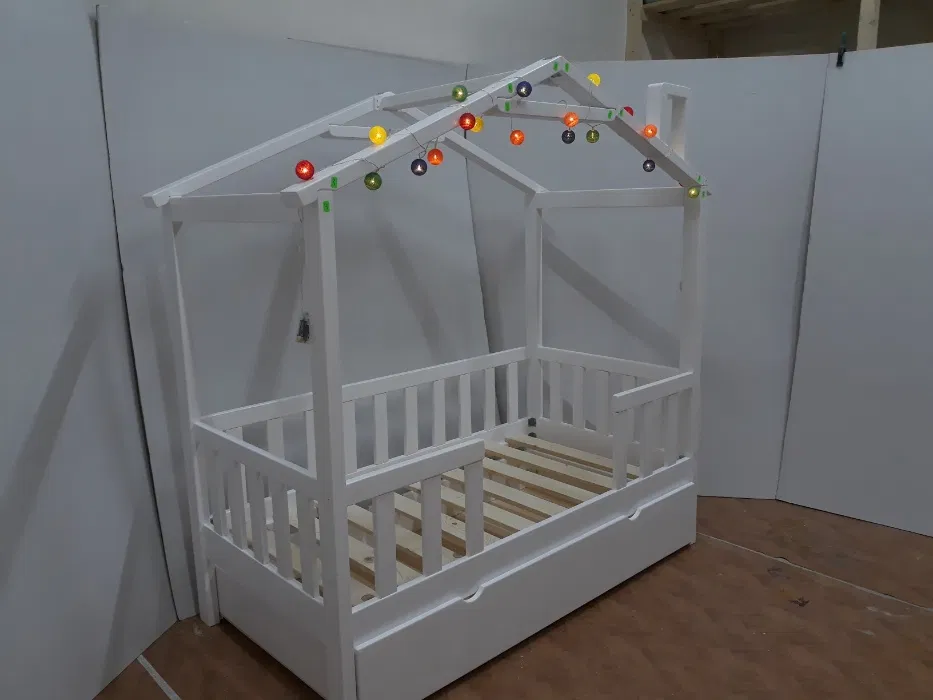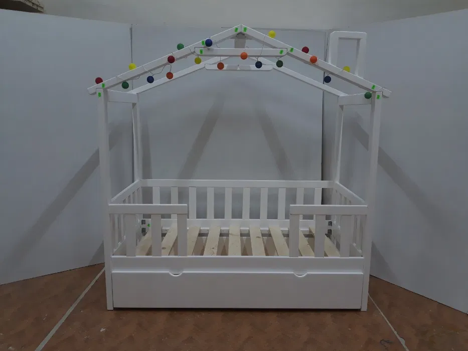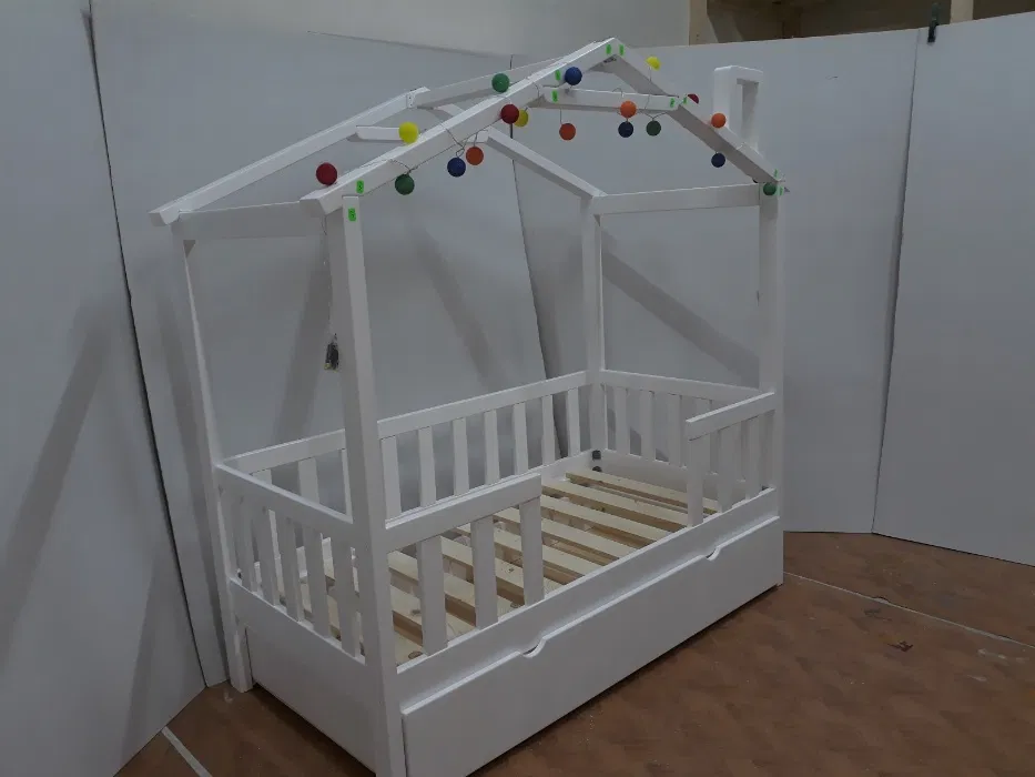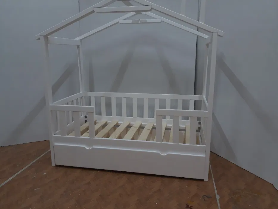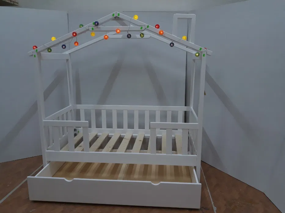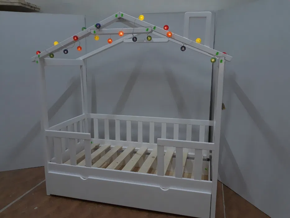 Cu un design inspirat din filosofia Montessori, patul tip căsuță din lemn masiv este creat pentru a oferi copilului un spațiu sigur, confortabil și plin de farmec. Realizat manual din lemn natural de înaltă calitate, acest model îmbină durabilitatea materialelor autentice cu un stil cald și primitor, perfect pentru camere luminoase și pline de viață.