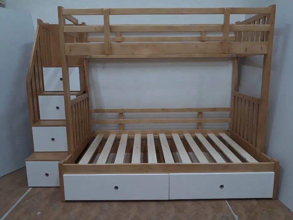 În preț sunt incluse toate componentele necesare: somierele rezistente, sertarele încăpătoare, tratamentul lemnului prin vopsire sau lăcuire ecologică, scara durabilă și kitul complet de montaj. Acest pat etajat din lemn masiv este demontabil și ușor de asamblat, fiind gândit pentru a aduce echilibru între funcționalitate și stil. Alege un produs care îmbină naturalețea lemnului cu un design inteligent – o alegere de durată, potrivită pentru spațiile în care calitatea și bunul gust sunt prioritare.